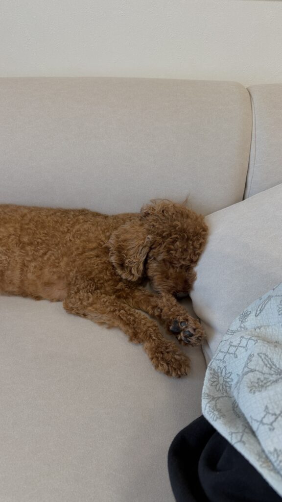 몽탄이는 소파 옆에 기대 앉은 나를 바라보다가 이내 고개를 툭 떨구더니,